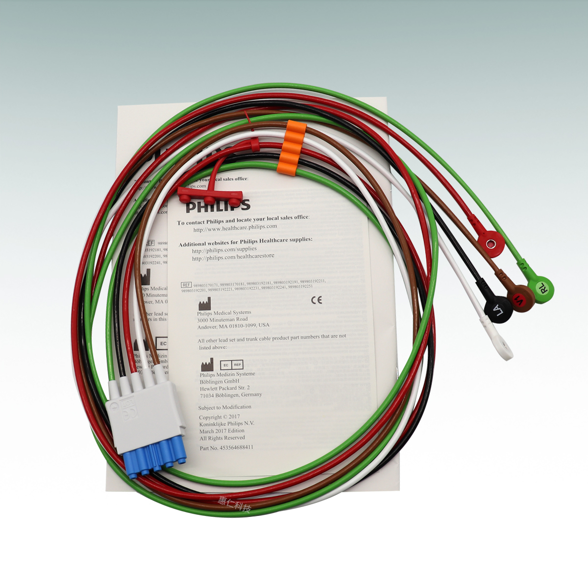 飛利浦MX400/450/500/550/M8102A監(jiān)護儀原裝分體扣式心電5導聯(lián)線M1644A